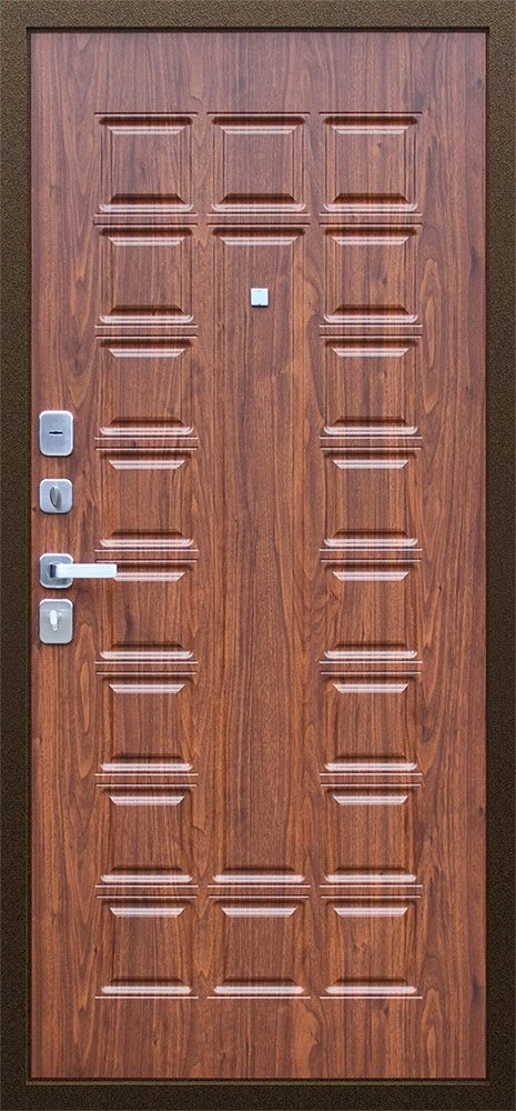 Надежная входная Дверь Спартак Орех темный премиум класса по цене 34 247 руб. Большая толщина стали защитит от проникновения в ваш дом, квартиру или коттедж. Используется очень качественная фурнитура: замки, цилиндры, ручки, защелки. Покрытие и отделка двери изготовлено под внимательным контролем производителя. Дверь имеет долгий срок службы и гарантию.